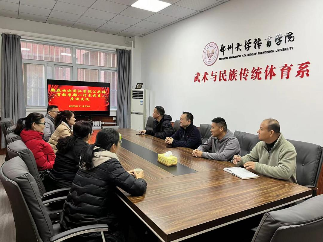 11月23日上午,闽江学院公共体育教学部雷雯、张德风等5位老师到我系座谈交流。我系党总支书记郭玉江教授、副书记杨应威副教授、副主任侯胜川教授、组织员袁晋文老师参与座谈,座谈会由侯胜川教授主持。