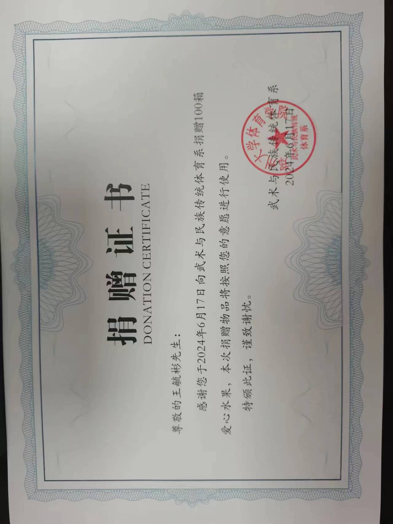 武术系的领导对王毓彬同学的捐赠表示了衷心的感谢和赞赏。王毓彬同学的善举不仅体现了学生对学校的深厚情感,也展现了新时代青年学子的责任与担当。