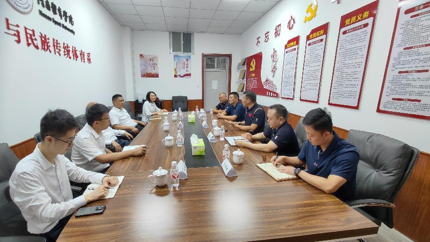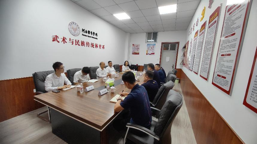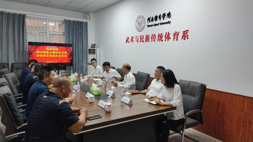 2024年9月4日,郑州信息工程职业学院创办人、董事长陶保富一行来我系考察交流。系主任胡玉玺陪同考察并出席座谈会,此次交流活动旨在加强校际间的合作与交流,共同推动武术与民族传统体育的发展。