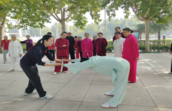 九月九日重阳佳节,是中国的传统节日之一,这一天,人们通常会登高望远、赏菊饮酒,寓意着敬老爱老的美好情怀。今年的重阳节,在这样一个充满温情的日子里,河南体育学院武术与民族传统体育系学子在全国冠军侯雯老师的带领下,赴惠济区春雨健身气功活动站开展了一场别开生面的老年节科学健身服务活动,给这个传统节日增添了更多温暖与活力。