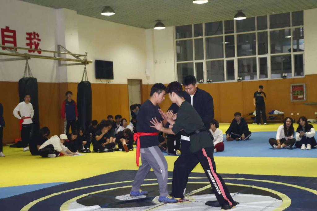 以赛代考的模式让太极推手课的考核充满了竞技性和挑战性。选手们在赛场上使出浑身解数,将平时所学的太极推手技巧展现得淋漓尽致。他们在你来我往之间,诠释着太极推手动静相宜、刚柔并济的独特魅力,每一次巧妙的借力、每一个稳健的步伐,都赢得了在场观众的阵阵掌声。