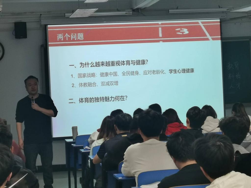 在具体内容方面,郭玉江书记结合运动心理学的相关理论和实践案例,生动地讲解了如何通过体育活动促进心理健康,并与学生们分享了如何合理安排运动、制定锻炼目标的建议。他鼓励学生选择适合自己的运动方式,并持之以恒,以体育赋能健康成长,以积极的心态面对学习和生活中的挑战。