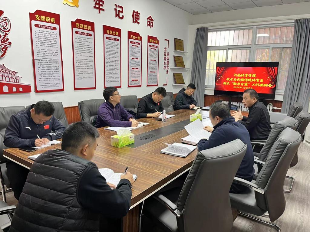 会议由胡玉玺主任主持,各教研室主任和全体管理人员参加了会议。胡主任首先强调了“教考分离”制度的重要性,他指出:“教考分离不仅能够有效检验教学成果,促进教学内容与方法的不断创新,还能激励学生自主学习,提高专业技能水平,是提升武术教育质量的关键一环。”