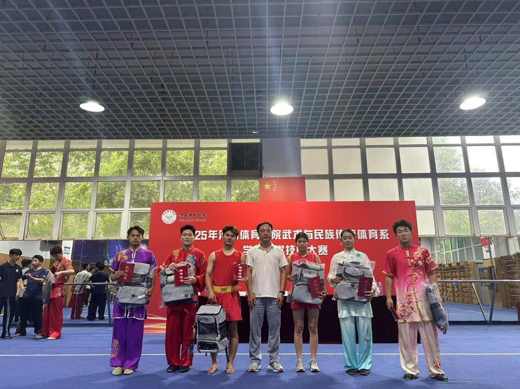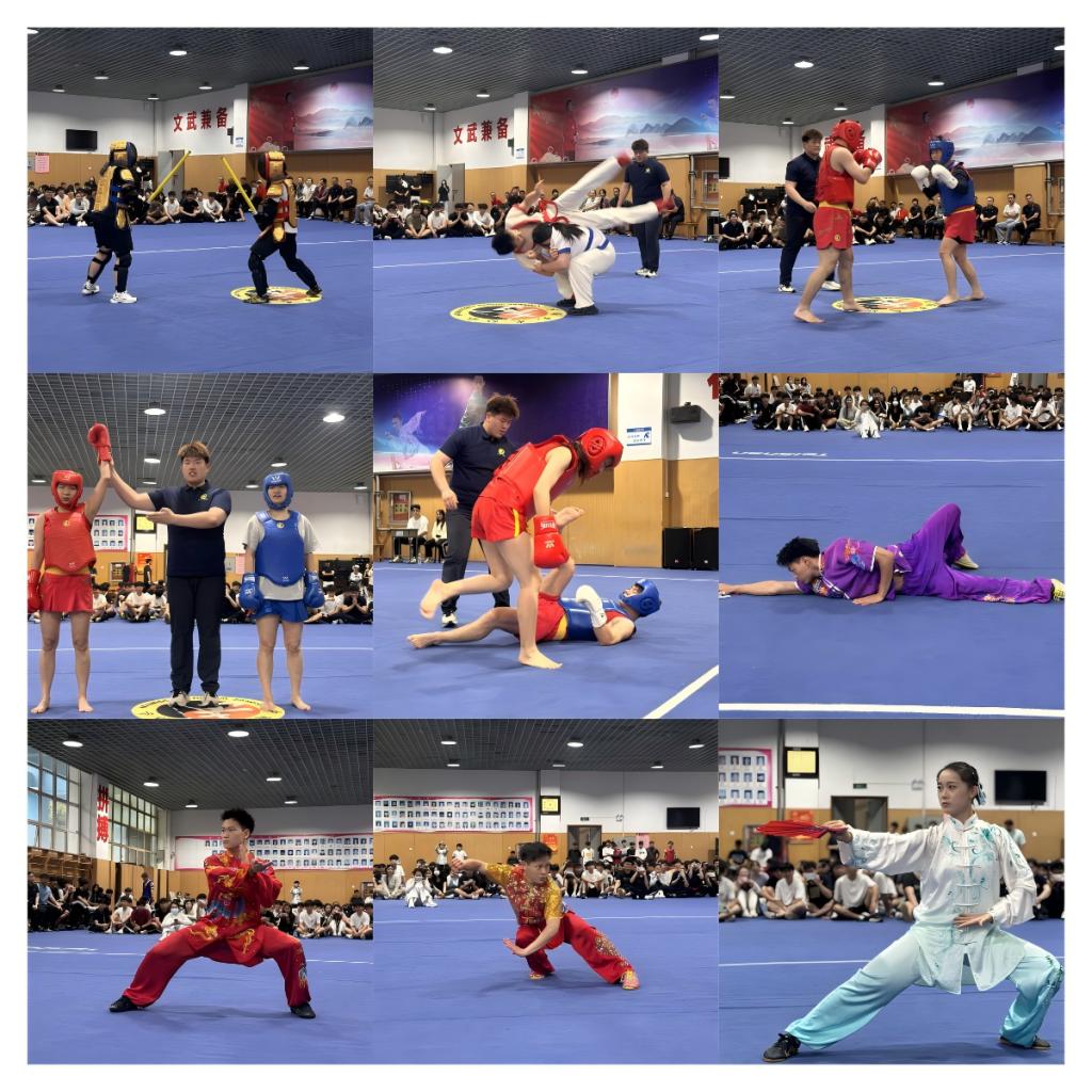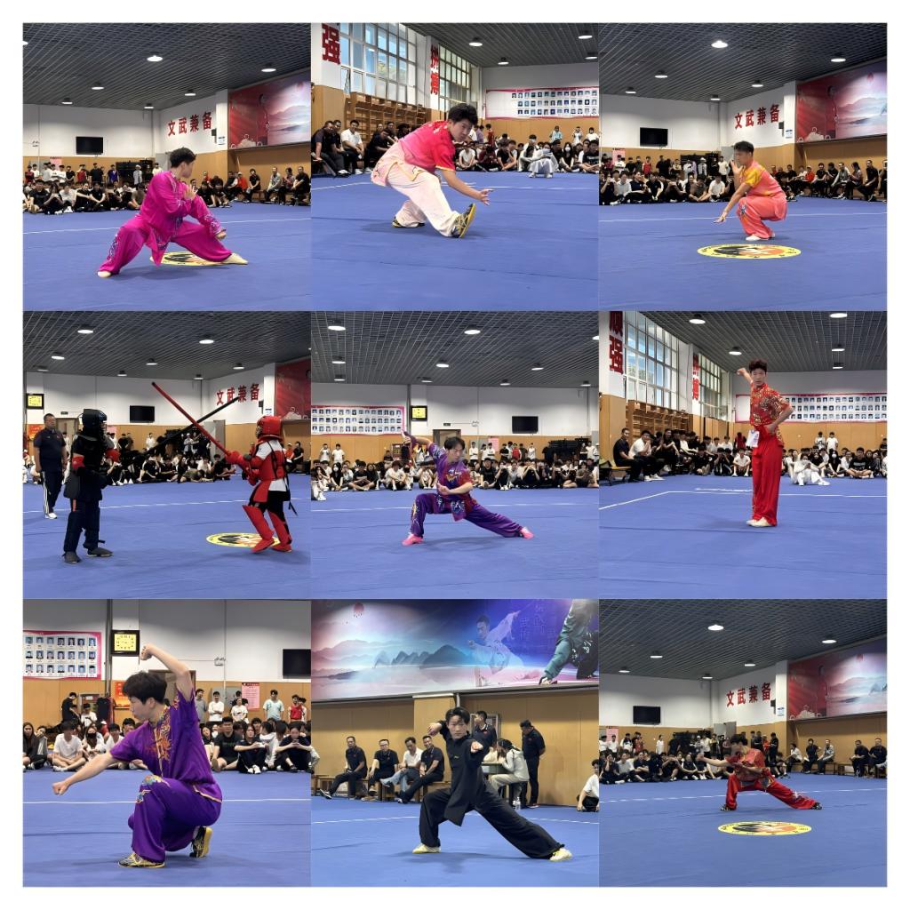 系党总支书记郭玉江、主任胡玉玺、党总支副书记杨应威、副主任耿彬等领导亲临现场,为选手们加油助威。武术系全体教师以及2022级、2023级学生齐聚一堂,共同见证这场武术盛宴。国家级裁判肖宏、李琳琳、乔蓓芸、余省威、孟璠杰等组成专业裁判团队,秉持着公平、公正、公开的原则,为比赛的顺利进行保驾护航。