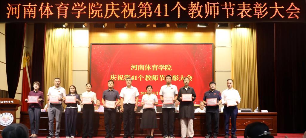 2025年9月10日,河南体育学院庆祝第41个教师节表彰大会在学术报告厅举行,河南省体育局党组成员、副局长田间出席会议,校领导张大超及班子成员、退休校领导及退休教师代表、师生代表等400余人参加了大会。大会由校领导刘丹宁主持。