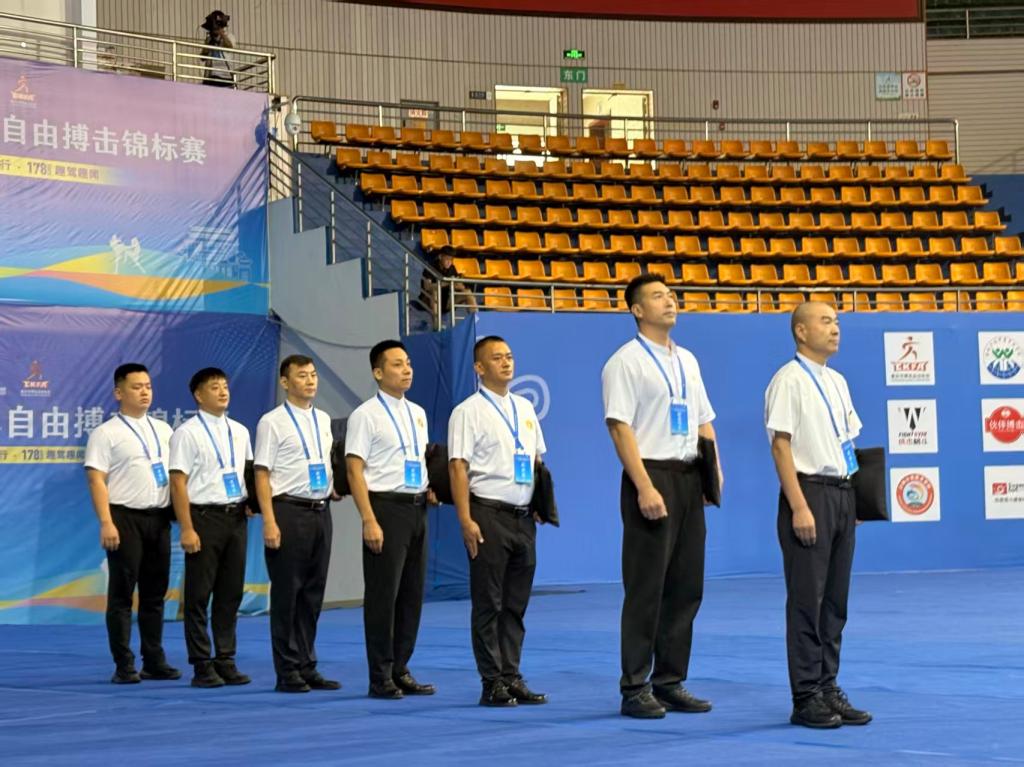 我系教师孟璠杰担任本次赛事裁判长并兼任临时党支部副书记,以高度的专业素养和责任意识,为赛事的顺利举办提供了坚实保障。凭借多年执裁搏击赛事的丰富经验以及对青少年赛事规则的精准把握,孟璠杰老师在赛前牵头组织全体裁判员开展专项业务培训,统一判罚标准,明确安全规范与流程细节。比赛期间,他全程坚守核心岗位,确保每一轮对决的判罚公正无误,并及时高效应对各类赛场突发状况,有力保障了赛事的圆满完成。
