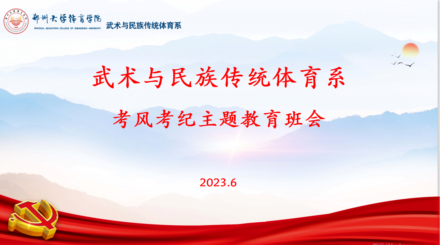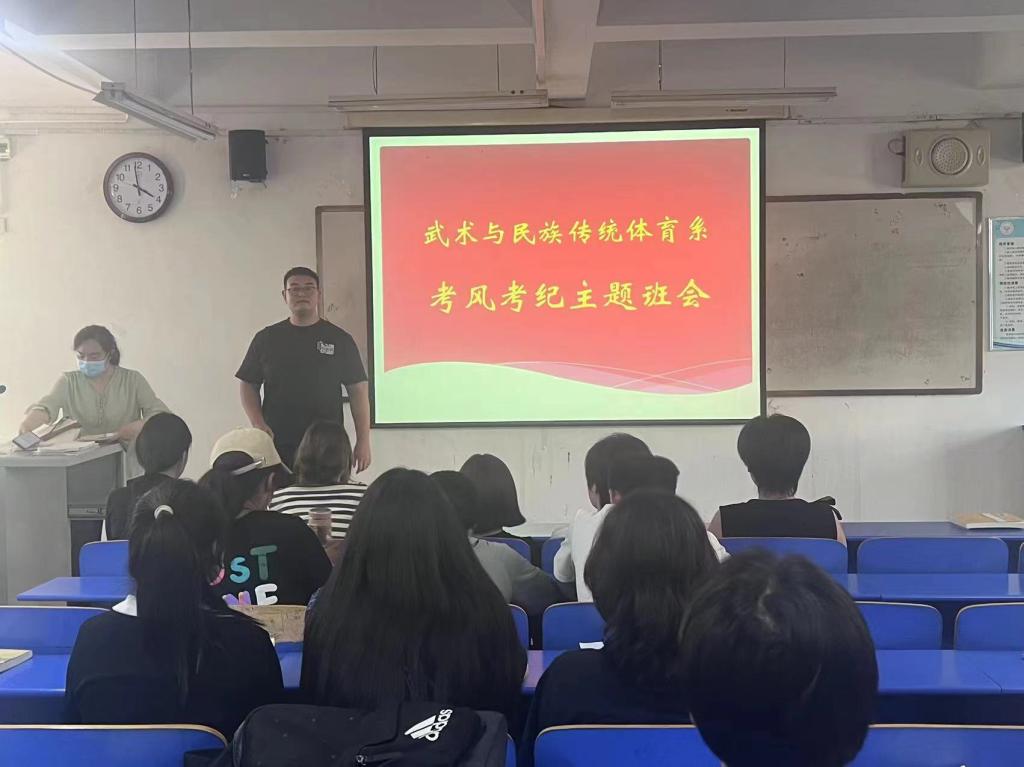 考试是检验学习成果的最好机会和重要手段,它能让我们正确评价自己,找出学习上的失误和不足,在求学之路上不断进步。为进一步强化考风考纪和诚信宣传教育,加强学风建设,营造文明、诚信考试的良好氛围,同时为了提高学生的思想道德修养;武术系近日组织各班召开了考风考纪教育主题班会。