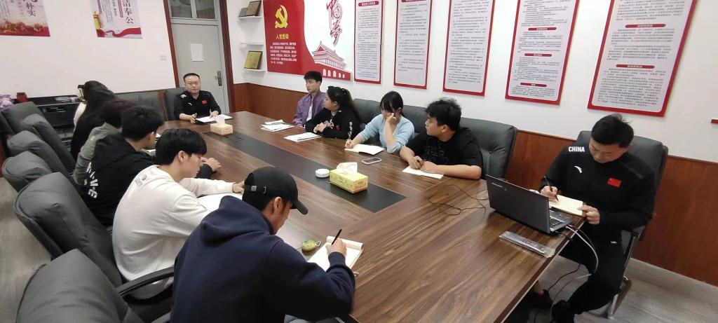 最后辅导员程甲齐与主要学生干部就近期学生日常工作情况进行汇报交流。
