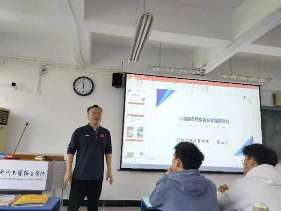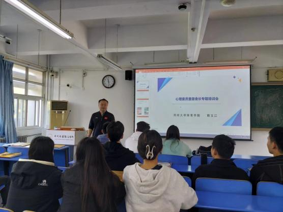 10月21日在综合楼403教室开展心理委员、寝室长心理健康知识培训,培训会由系党总支书记郭玉江主讲。