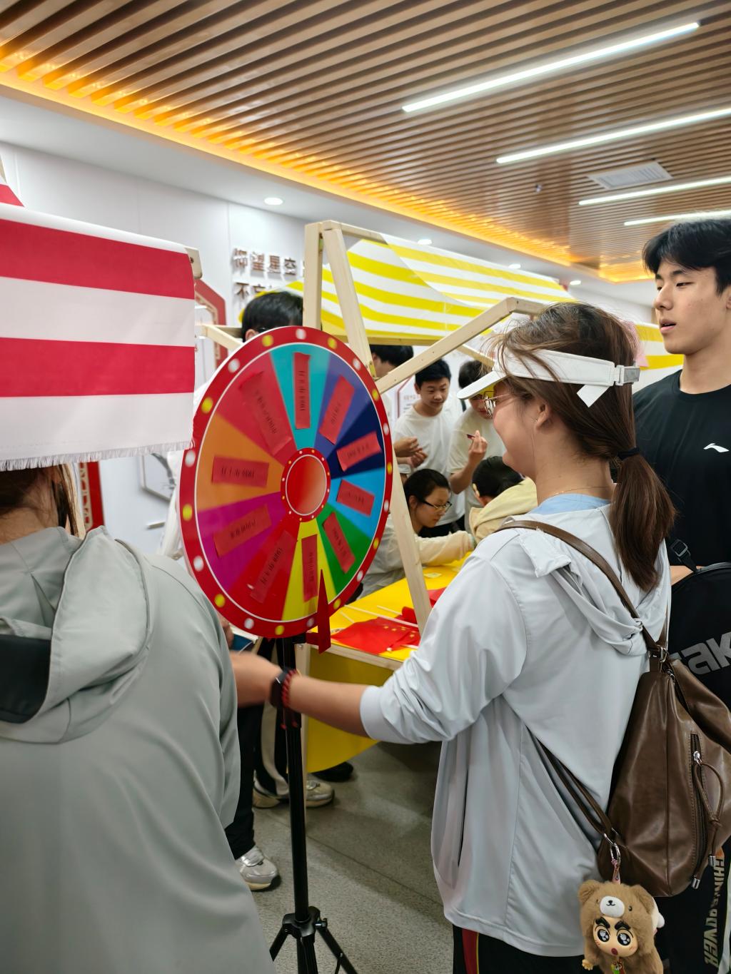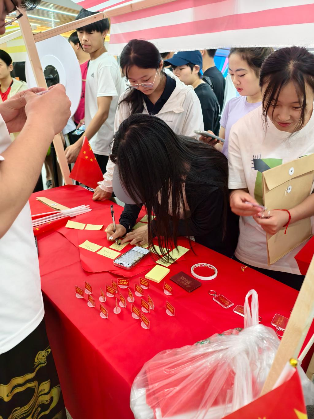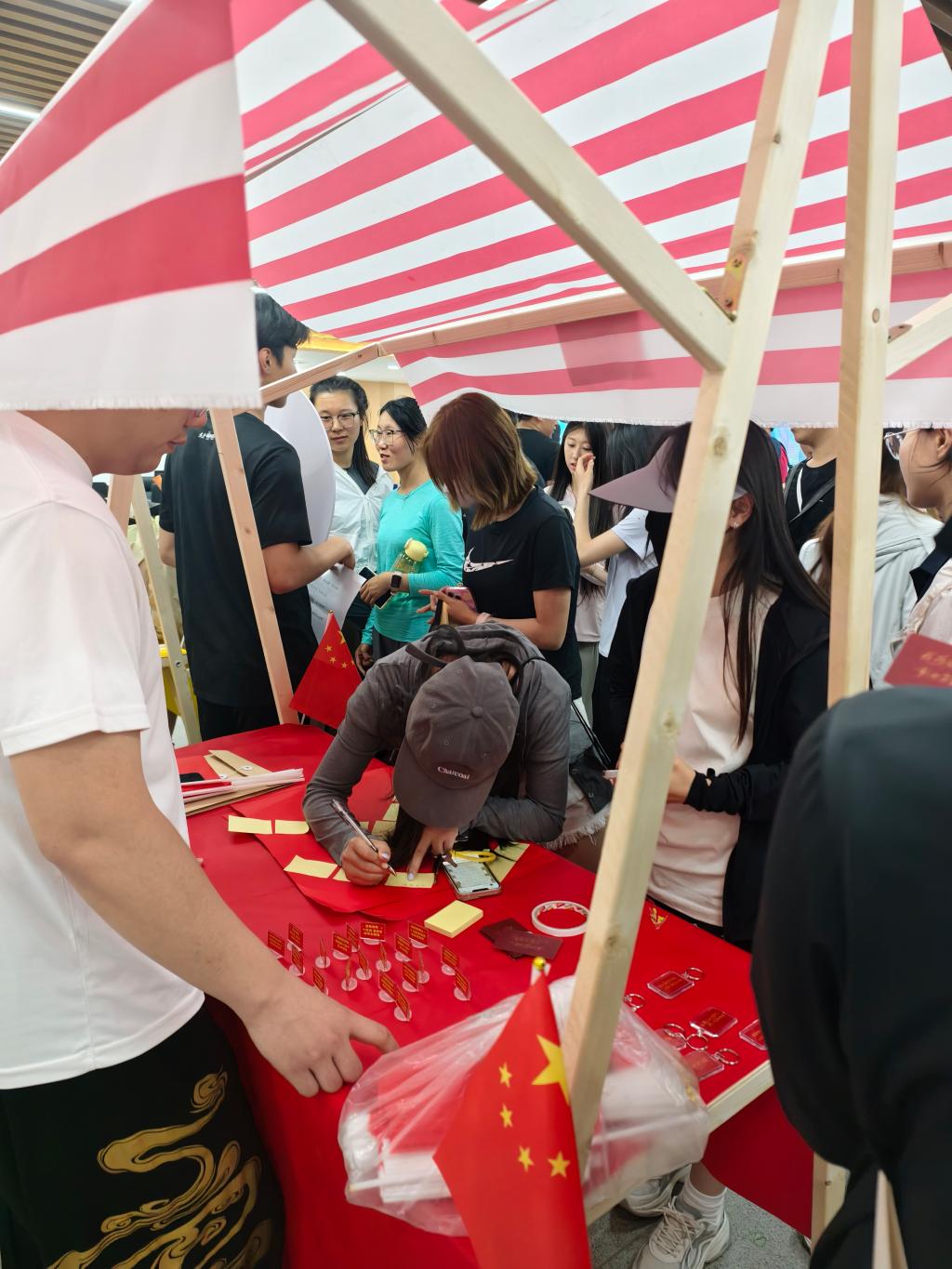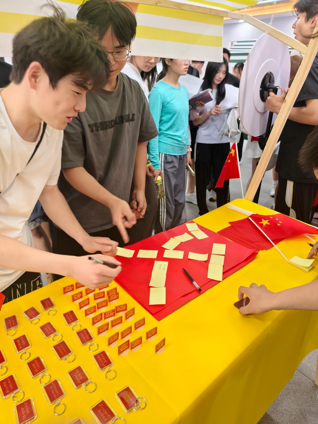 文化市集活动形式新颖:党史知识竞赛巧妙融入抢答、转轮盘等趣味互动环节,让参与者在紧张刺激的氛围中加深对党史知识的记忆;党史心声留言墙则汇聚了各系学子对党的炽热祝福与崇高敬意,字里行间洋溢着对党的深情厚爱,激发起强烈的情感共鸣;“红色武技教学”环节,学员们在强健体魄的同时,也潜移默化地学习了党史知识,实现了知识汲取与体能提升的双重收获。这一系列沉浸式的互动体验,让党史学习变得生动鲜活、深入人心。