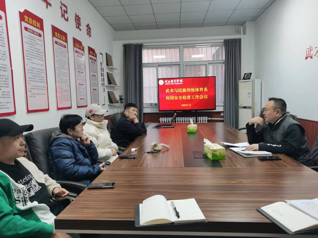 为深入贯彻落实校园安全工作相关要求,切实消除宿舍安全隐患,保障学生人身与财产安全,11 月 19 日,武术与民族传统体育系召开宿舍安全专项检查工作会议,制定了《武术与民族传统体育系安全督导检查工作方案》,建立了包含系领导、专项教师、辅导员在内的系级检查小组和学生干部、学生党员、入党积极分子在内的学生会检查小组,并明确了巡查机制以及通报流程和处理办法。中午,系党总支书记郭玉江、副书记杨应威分别带队,辅导员及专项老师共同参与宿舍安全检查。