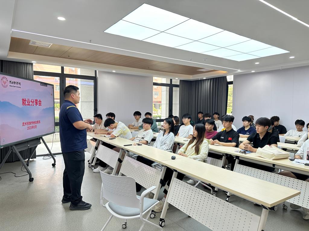 双向赋能,共启未来:分享会设置自由提问环节,两位嘉宾针对“武术机构与学校合作模式”“高校教师职称晋升路径”等问题展开深入交流。本次活动旨在搭建“创业+就业”双轨交流平台,未来将持续邀请行业精英分享经验,助力学生高质量就业。