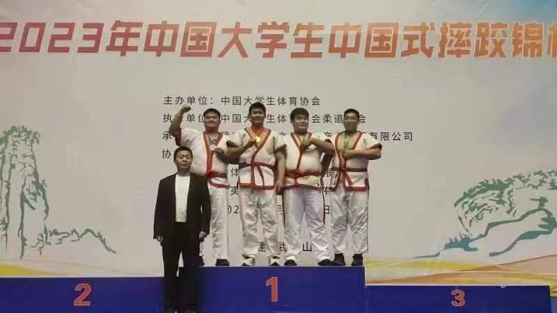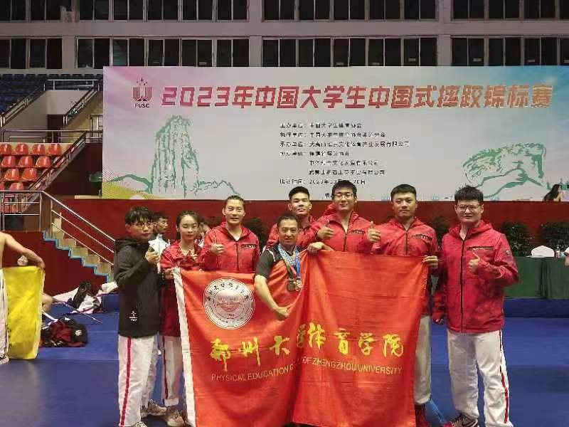 郑州大学体育学院中国式摔跤队在教练员蔡海生老师带领下,我系7名学生经过三天的激烈角逐,共取得2枚金牌、1枚银牌、1枚铜牌、一个第五和一个第七的优异成绩;在丙组(全国高校高水平组)比赛中,吴志祥获得100公斤以上级冠军、李硕鑫获得100公斤级冠军、刘永茂获得52公斤级亚军、韩宇获得90公斤级季军、吴怡获得女子52公斤级第五名、孙心慧获得65公斤级第七名。
