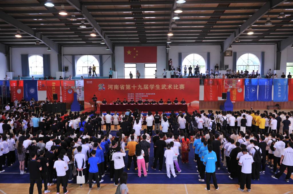 河南省学生武术比赛是展现全省大中学生武术演练水平的最高舞台。本届赛事由省教育厅、省体育局主办,省学生体育总会武术协会执行,郑州大学体育学院承办。比赛设有大学生组和中学生组,吸引了来自郑州大学、河南大学等78所高校代表队585名大学生武术专业运动员、来自32所中学代表队143名中学生运动员报名参赛,我系作为本次赛事协办单位,系领导高度重视、积极筹备、严密组织,我系领导及十余名教师全程参与赛事组织、编排、检录、服务等工作,为赛事顺利进行保驾护航,得到了上级领导和参赛单位的一致好评。
