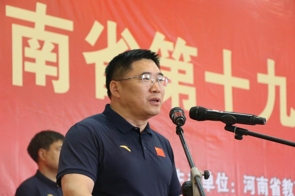 院长张大超出席开幕式并致欢迎词,省教育厅体卫艺处处长舒卫方讲话并宣布比赛开幕,省体育局青少处副处长马运波、省武术体操冰雪中心主任晏猛、学院副院长张原等领导出席开幕式。