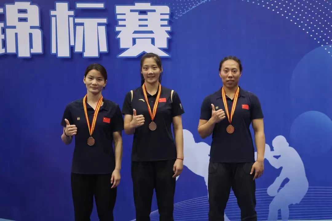 我系师生在本次全锦赛中发挥出色,晁昊辉获得男子100+公斤级第一名,杨婷获得女子56公斤级第一名,王少华、靳文斌分别获得男子90kg 级和65公斤级第二名,马明佳和王水杰分别获得女子70kg 级和52公斤级第三名,马付林、靳文斌、田振博、晁昊辉等选手代表河南队荣获男子团体第一名。
