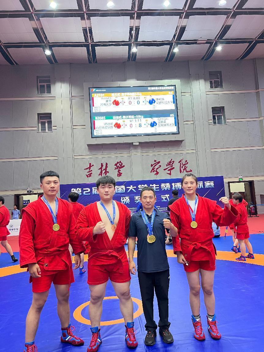 我系教师蔡海生带领3名运动员代表河南体育学院出战,通过不懈的努力和顽强拼搏,共夺得了2枚金牌、1枚铜牌。