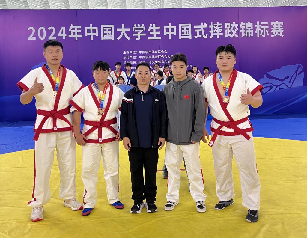 河南体育学院中国式摔跤代表队在蔡海生老师的带领下,李雨隆、李硕鑫、韩二真、刘政昊四名队员表现出色,通过不懈的努力和顽强拼搏,共夺得了3枚铜牌。赛场上,队员们奋勇拼搏,展现出精湛的摔跤技艺和顽强的拼搏精神。他们用汗水和努力诠释了体育的魅力,为学校争得了荣誉。