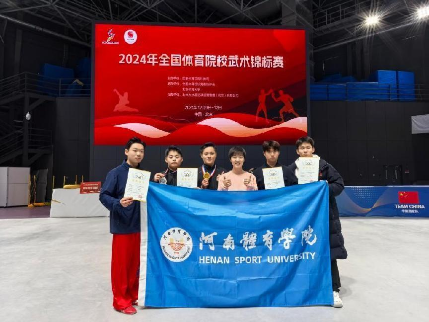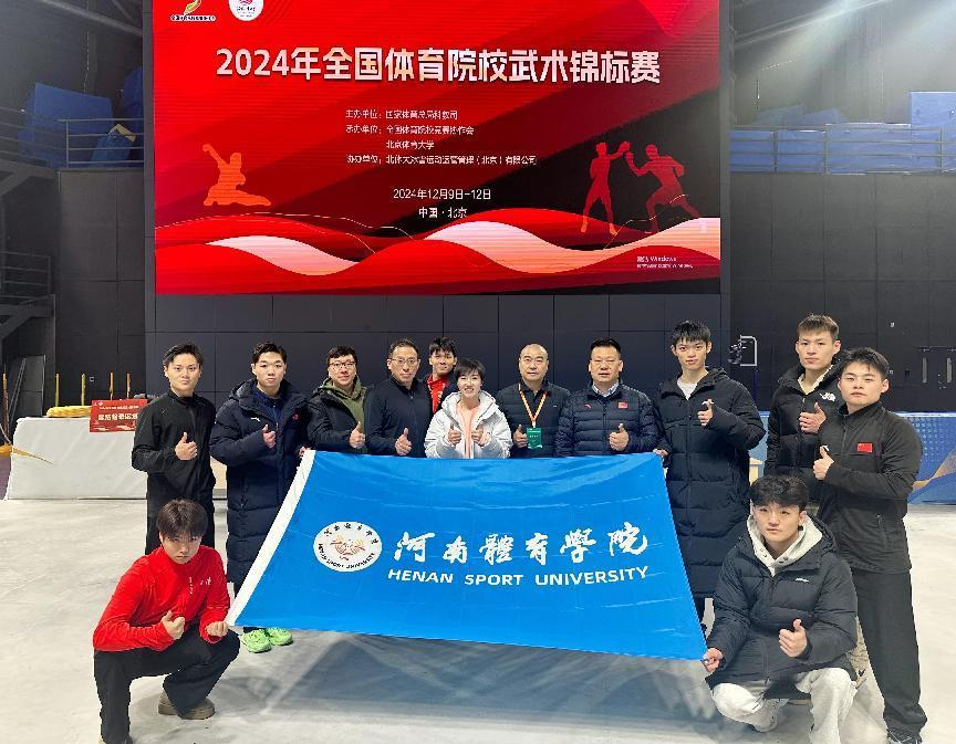 12月9日-12月12日,2024年全国体育院校武术锦标赛,在北京体育大学二七国家冰雪运动训练科研基地举行。本次比赛我校学生共获一金一银三个第四名和一个第五名一个第六名三个第七名一个第八名的好成绩。教师李琳琳获得优秀教练员,学生牛靖辕、秦政、杨鸿林获得优秀运动员。
