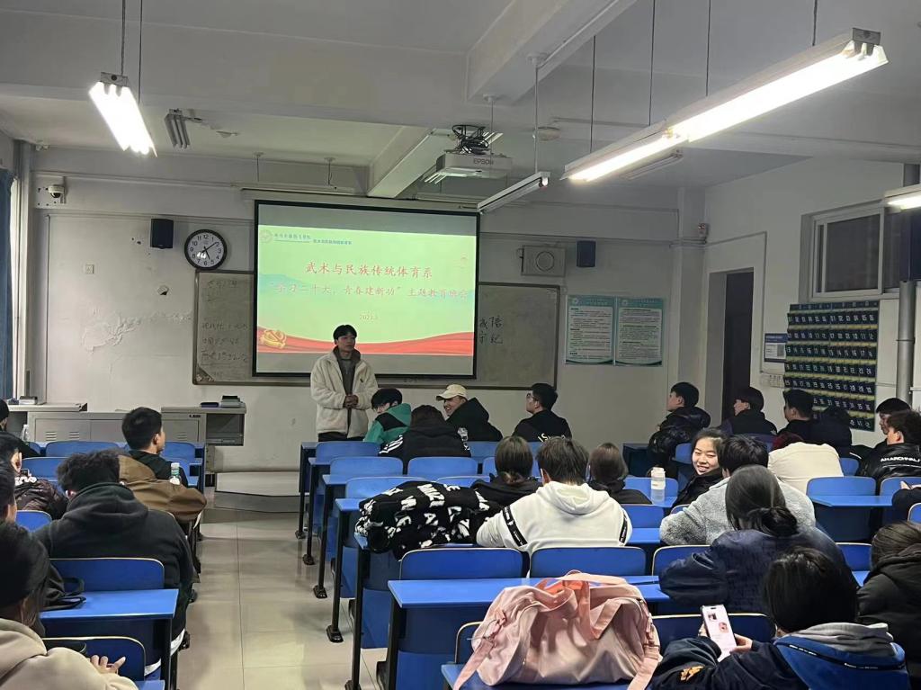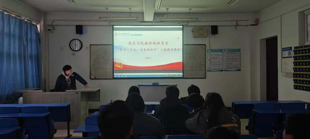 为深入学习贯彻党的二十大精神,进一步加深对习近平新时代中国特色社会主义思想的理解,营造学习宣传贯彻党的二十大精神的浓厚氛围,推动党的二十大精神深入到广大师生头脑、深入到广大师生心中,让党的二十大精神在校园落地生根、开花结果。根据学院《关于在全院学生中开展“学习二十大、体院在行动”主题活动的通知》文件精神,我系于近日组织全系学生开展“学习二十大、青春建新功”主题教育班会。