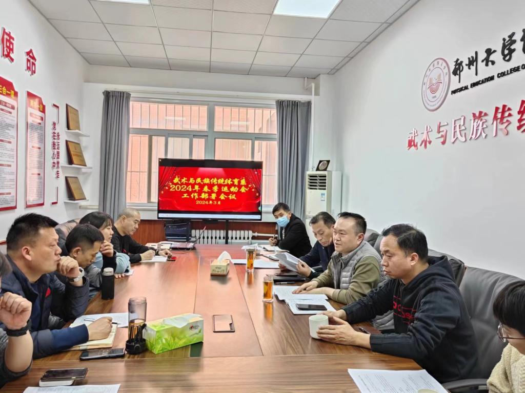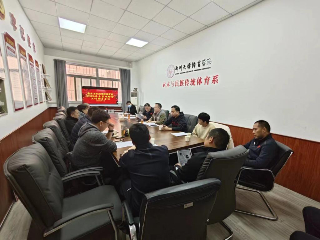 2024年3月15日,我系在党员活动室召开第二十二届春季运动会工作部署会议,系党总支书记郭玉江、主任胡玉玺、副书记杨应威、副主任侯胜川、管理人员及全体专项课教师参加会议。