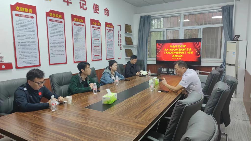 9月30日,我系《太极拳双语教程》编写工作启动仪式在系党员活动室召开,系主任胡玉玺及全体编写负责教师参加启动仪式。