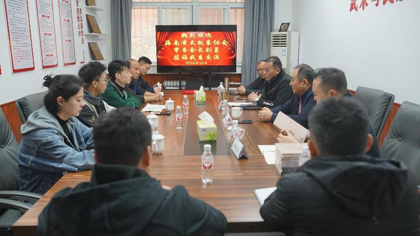 10 月 28 日,国际太极名家、陈式太极拳第十二代传人、海南省太极拳协会常务会长刘勇先生应邀做客我系“武术名师工作坊”,为我系带来了一场意义非凡的太极交流活动,系主任胡玉玺、党总支书记郭玉江及部分教师代表参加交流座谈。