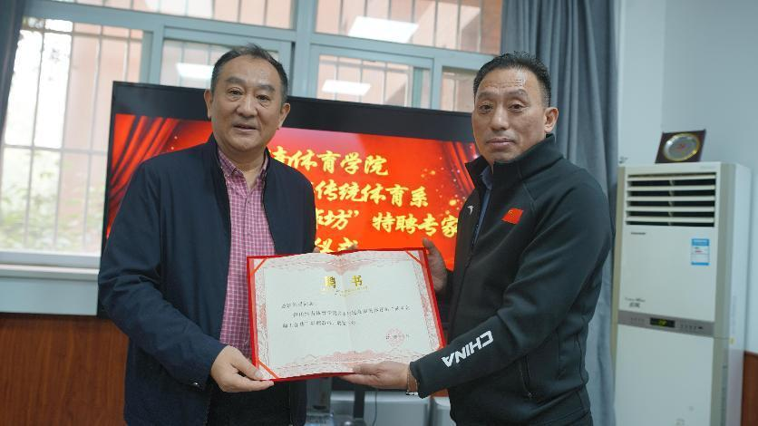 随后,系主任胡玉玺教授为刘勇先生颁发“武术名师工作坊” 特聘专家证书,这一举措将为我系的教学与发展注入新的活力和智慧。