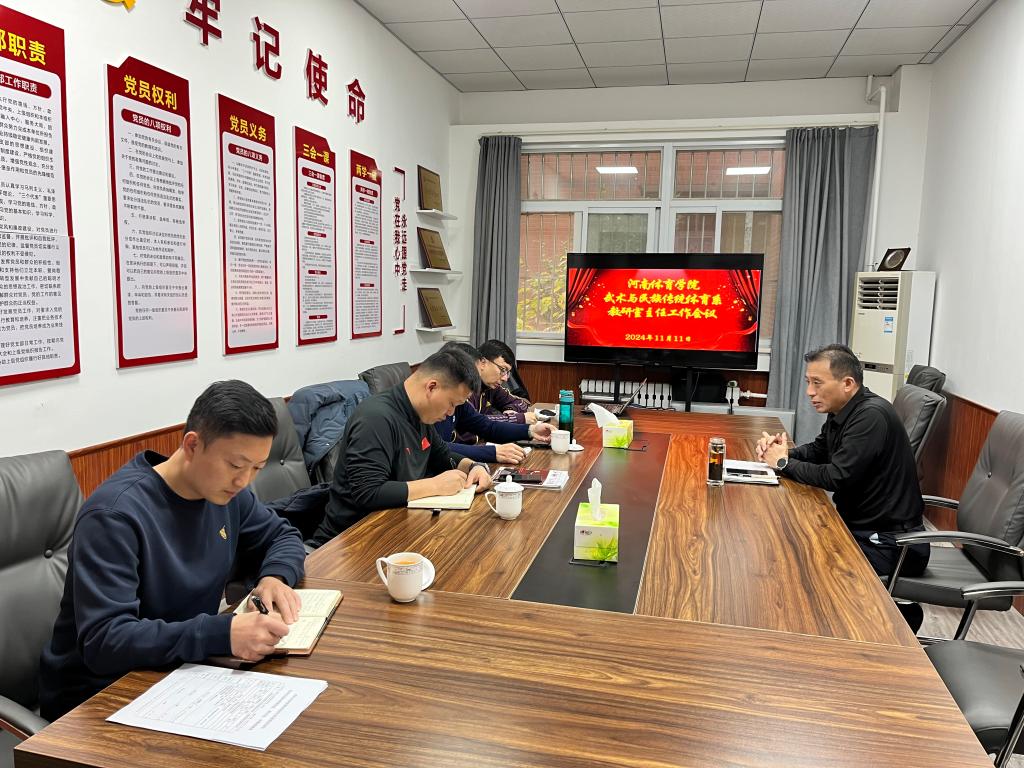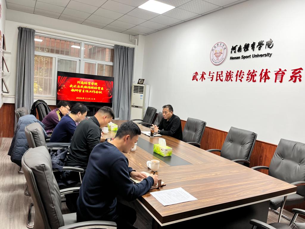 会议伊始,系主任胡玉玺发表讲话。他强调了武术与民族传统体育系在学院发展中的重要地位,指出教研室作为教学和科研的基层组织,对提升教学质量、推动学科发展起着至关重要的作用。胡玉玺主任对各教研室过去一段时间的工作给予了充分肯定,并对未来的工作提出了殷切期望和明确要求。