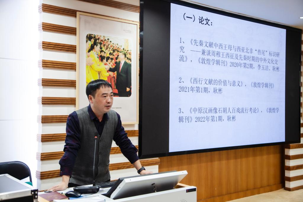 评审会上,耿彬博士汇报了在站期间的科研工作情况。出站报告题目为《中原汉画像石体育文化研究》,以中原汉画石体育图像为研究对象,主要包括角抵、蹶张、射鸟、武艺、狩猎、战争、蹴鞠、斗鸡、六搏、飞剑、弄丸、跳丸、倒立、柔术、杂耍、投壶、傩舞、养生术等,通过细致梳理考证,耿彬博士对中原汉画像石体育图像反映的中外体育文化交流做了系统研究。在站期间,耿彬博士以扎实的学术态度完成了各项研究工作,取得了丰硕的学术成果,先后主持一项国家级项目,发表两篇高水平学术论文。专家组对耿彬博士的工作给予了高度评价,充分肯定了他在站期间取得的成绩,并一致同意其通过出站考核。