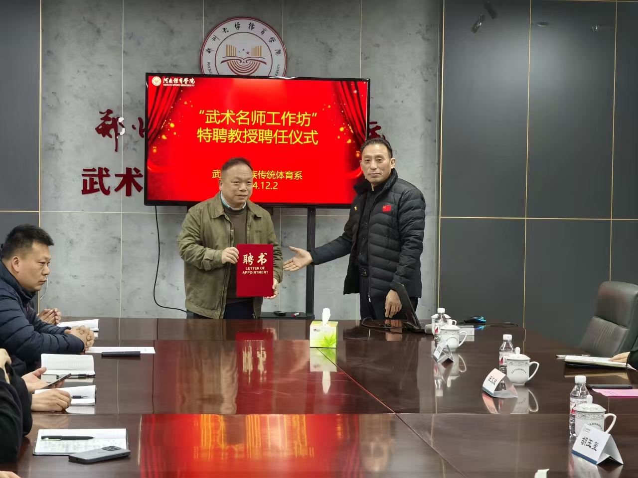 在专题讲座开始之前,举行了简单而庄重的聘任仪式,系主任胡玉玺为田文波博士颁发了客座专家聘书,以此表达我系对其在武术历史研究方面的认可与尊敬。