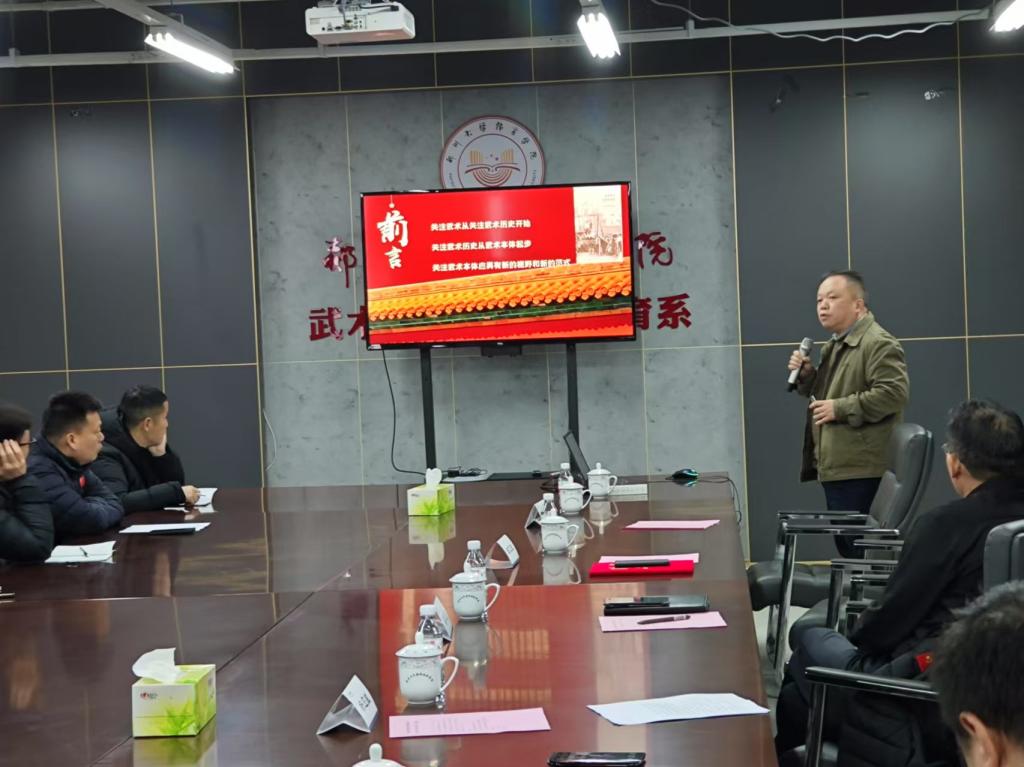 12月2日,我系在学院图文信息楼1001室隆重举办了“武术名师工作坊”专题讲座。此次活动特别邀请了《武术研究》主编田文波博士作为主讲嘉宾,为我系师生献上了一场内容丰富且富有启发性的报告,本次活动由系副书记杨应威主持。