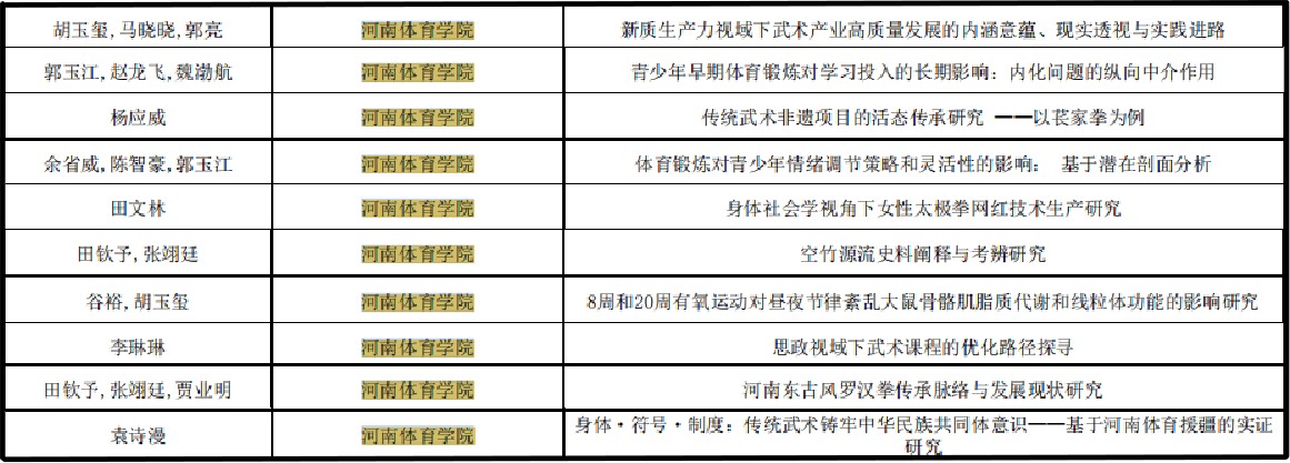 本次被录用稿件涉及民族传统体育现代化发展、武术运动科学训练、体育文化传承创新、体育与科技融合等多个研究方向,内容既立足民族传统体育学科特色,又紧扣“体育高质量发展”与“科技赋能”的大会主题,体现了我系科研团队对学科前沿问题的敏锐把握和对国家体育发展需求的积极回应。