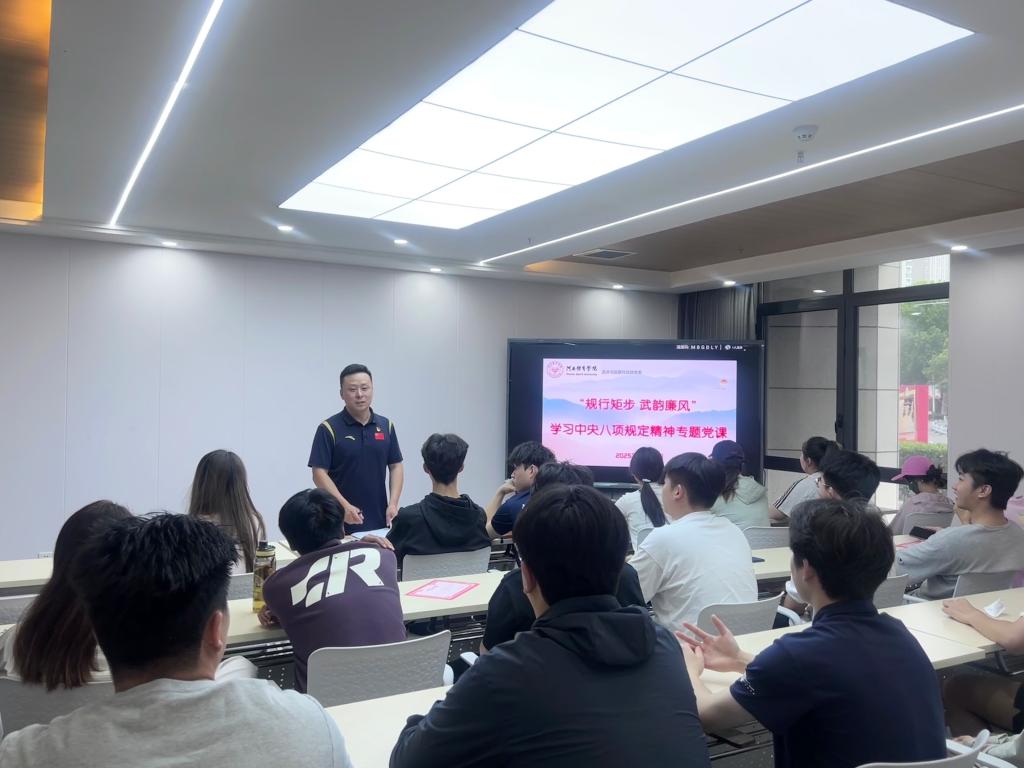 为深化学生党员纪律意识,筑牢思想防线,2025年6月26日,我系学生党支部书记米金辉以“规行矩步 武韵廉风”为主题,为本系学生党员讲授深入学习领会中央八项规定精神及其时代内涵的党课。