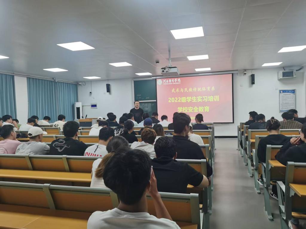 培训中,郭玉江书记结合武术专业特点,以“安全为基,行稳致远”为主题展开讲解:一是强化安全意识,通过剖析体育行业典型案例,强调人身安全、训练防护等关键环节的注意事项;二是明确责任担当,要求学生严格遵守实习单位规章制度,以高度的责任感完成教学与实践任务,展现武术学子的专业素养。